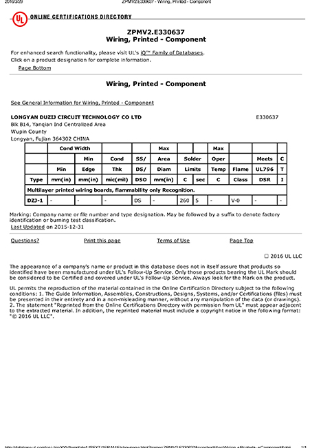自1997年成立以來,都之杰已經獲得ROHS產品認證,各項技術指標達到國家先進水平,質量和信譽是企業(yè)的生命,我們一直以來持續(xù)不斷改善產品的質量,以質量取勝市場,提高公司的信譽度。多年來憑優(yōu)良的產品質量、準時快捷的供貨和周到細致的服務,深得國內外客戶的好評。我們已經獲得良好的聲譽和客戶的信任,并逐漸成為客戶可信賴的、能長期合作的印刷線路板戰(zhàn)略合作供應商。我們堅持向國內外先進企業(yè)學習并不斷提升自主創(chuàng)新。公司擁有經驗豐富及穩(wěn)定的團隊,視質量為企業(yè)生命,嚴格推行ISO9001質量管理體系,符合ROHS標準,并獲得了UL安全認證、TS16949和CQC認證。